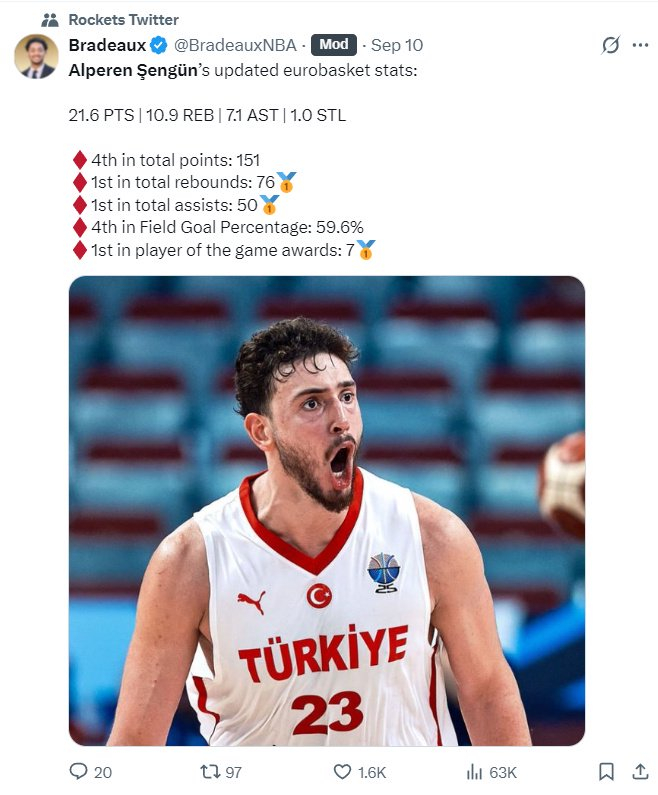 北京时间9月12日,名嘴帕金斯在ESPN的节目中谈到了火箭中锋阿尔佩伦-申京,结合申京上赛季的表现与今夏欧洲杯的表现,帕金斯说道:申京具备高水平的防守能力,这使得他有成为联盟前五中锋之一的潜力。