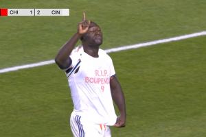辛辛那提前锋登凯伊第42分钟破门,破门后丹基掀开球衣展示衣服,指天哀悼去世的浙江队球员布彭扎。